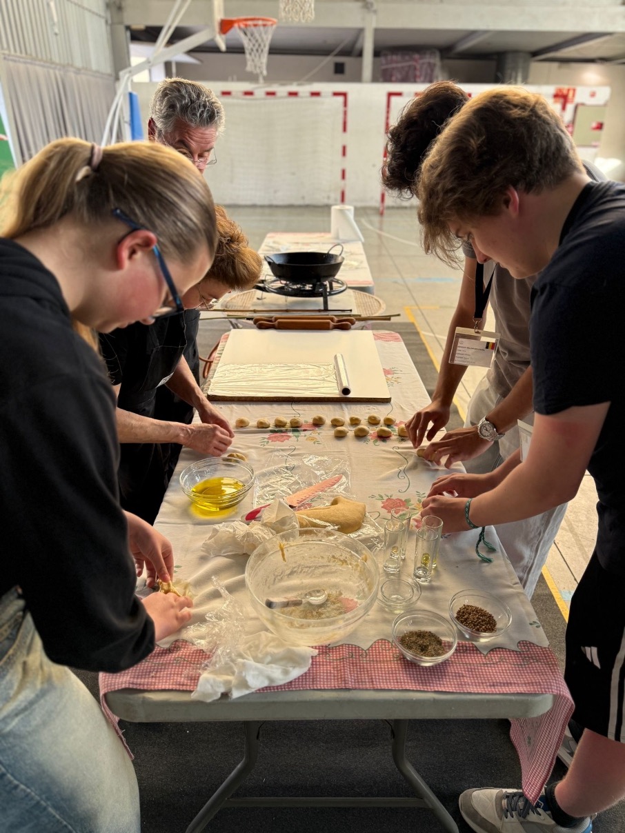 Am Abschlusstag kamen wir noch einmal alle zusammen, um die Woche gemeinsam Revue passieren zu lassen. Beim Backen von Orelletes und beim Gestalten von Ölmalereien konnten wir ein letztes Mal aktiv in die Traditionen der Region eintauchen.